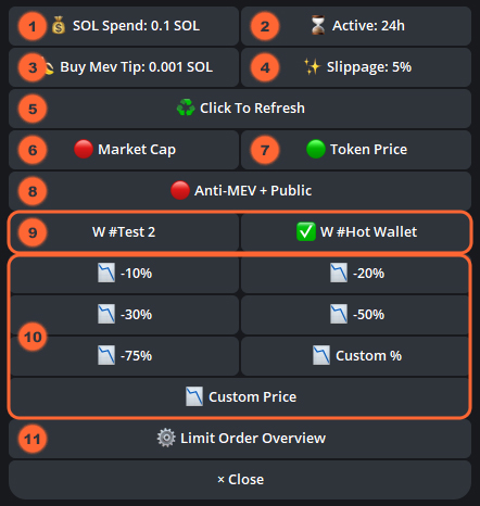 SOL Spend: Amount of SOL you want to spend on the order.