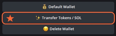 Navigate to "Wallet Settings" and select "Transfer Tokens / SOL."