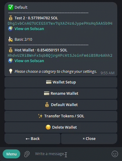 Banana Bot allows you to transfer SOL and SPL tokens across the Solana network.